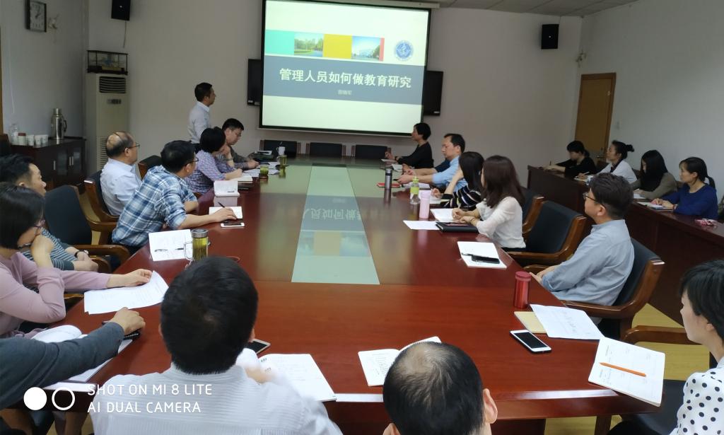 部长助理曾德军作题为“管理人员如何做教育研究”的报告。党支部书记熊瑛主持。