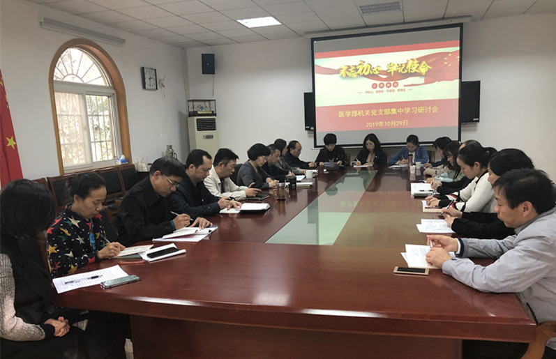 机关党支部开展“不忘初心、牢记使命”集中学习研讨活动,全体党员参会,支部书记熊瑛主持。
