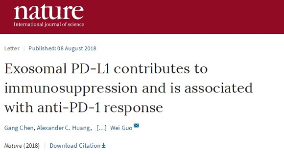格林威治时间2018年8月8日,Nature(《自然》)以“Exosomal PD-L1 contributes to immunosuppression and is associated with anti-PD-1 response”(外泌体PD-L1介导免疫抑制及预测PD-1单抗疗效)为题,在线发表了...